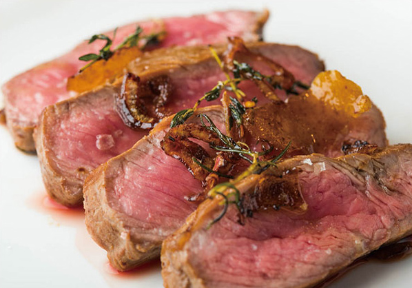 料理修業のため、アメリカで5年間暮らした経験をもつ米澤文雄シェフ曰く、アメリカン・ビーフほどステーキに向いた肉はないという。「穀物肥育だからこそ、旨味が濃く味わい深い。アメリカン・ビーフは赤身と軽いサシのバランスが良いことも魅力で、やわらかく、ジューシーなステーキに仕上がります」。