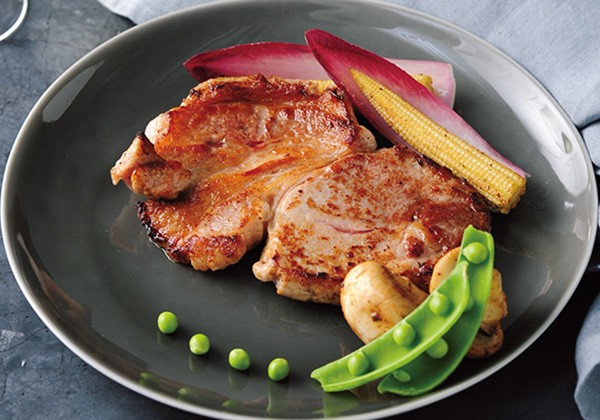 ポークソテーは、厚めの肉を焼いてソースをかけるだけ、とごくシンプルな調理法の定番料理。