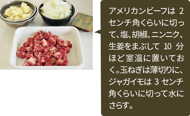 今月使用するお肉はアメリカンビーフの肩ロースです。厚みのあるステーキ用のお肉としてよく売られていますが、今回はこちらを使うのがポイント。