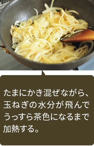 ここまで炒めると玉ねぎがキャラメルのような甘い香りに変化し、食感はとろけるよう、お料理に自然の優しい甘みとコクをプラスしてくれるようになります。