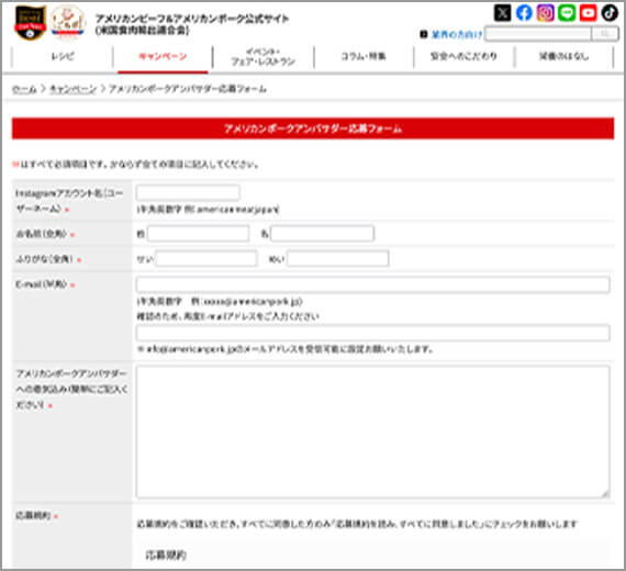 - ※指定ハッシュタグ「#アメリカンポーク」「#アメリカンポークアンバサダー」「#10万人のおいしい実感プロジェクト」は必ず記載ください。