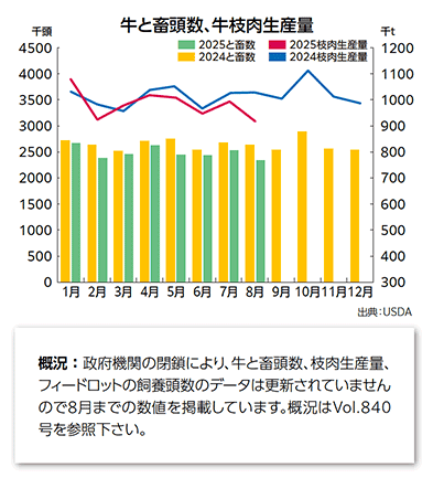 食肉・家きん類業界を代表する北米食肉協会(NAMI)のジュリー・アンナ・ポッツ会長兼CEOは、「牛肉の消費者価格は高騰しているが、牛価格が過去最高水準にあるため、パッカーは赤字を計上している」と述べ、牛の供給不足と強い需要によって、パッカーは1年以上にもわたって赤字経営を強いられていると強調した。