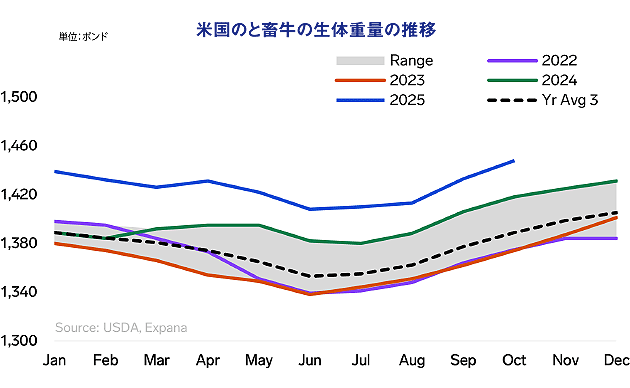 週当たり豚肉生産量が5億7400万ポンドに達したのは1月以来だが、当時のカットアウト価格は100ポンド当たり90ドルまで下落した。11月中旬のカットアウト価格もほぼ同水準となっている。