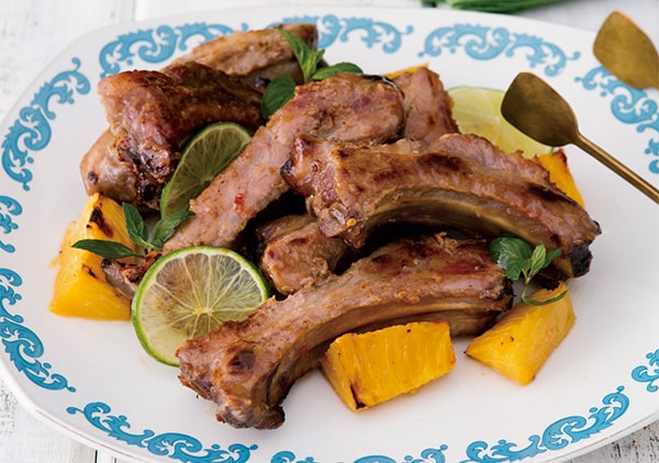 骨つきの美味しいバックリブを主役に。パイナップルとライムで鮮やかな彩りをプラス