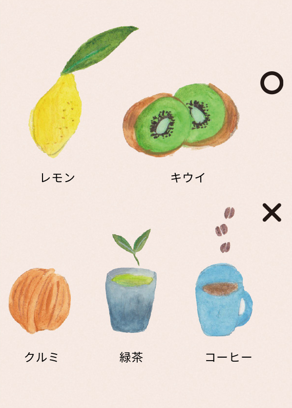 アメリカン・ビーフと和牛の肩ロースで鉄の含有量を比べてみると、下表のようにアメリカン・ビーフは和牛の2倍以上の鉄を含んでいます。加えて、アメリカン・ビーフはカロリーも和牛の約2/3で、摂取しにくい栄養素であるビタミンB12が多く含まれている点も優れています。鉄は、ビタミンCを多く含んだ野菜やクエン酸の多い果物と一緒に摂ると、より効果的に吸収できます。逆にコーヒーや緑茶、クルミなどのタンニンを含むものは鉄の吸収を妨げるので、食事中や食後すぐに摂ることは控えましょう。