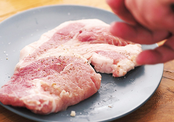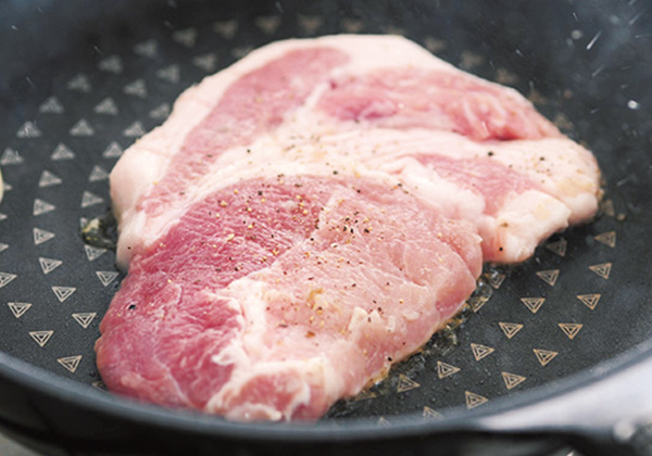 ポークソテーは、厚めの肉を焼いてソースをかけるだけ、とごくシンプルな調理法の定番料理。
