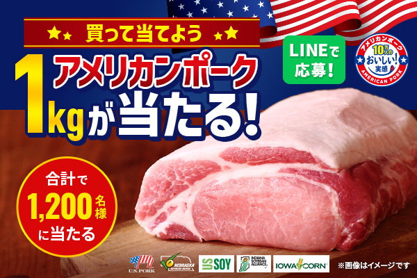- A賞:アメリカンポーク ロース(かたまり)約500g 各SNS10名様(合計30名様)