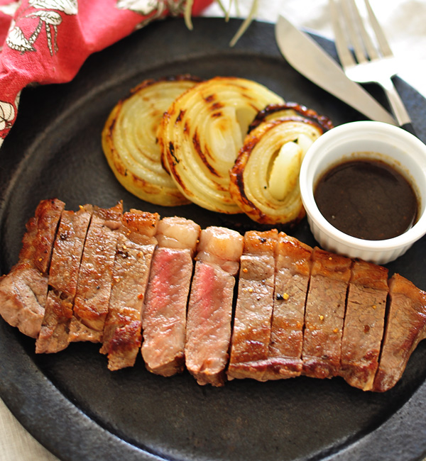 - アメリカンビーフは、霜降りのお肉ではなく赤身が中心のお肉。肉汁を保ったまま焼くためには必ず肉の温度を室温に戻すこと、高温でさっと焼いてそのあとはホイルにすぐに包み、決してフライパンの上に置きっぱなしにしないことが重要です。事前に包むためのホイルを用意しておく、付け合わせの野菜を肉の焼ける時間に合わせて作っておくなど、段取りを考えてから作り始めましょう。