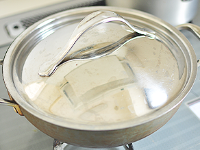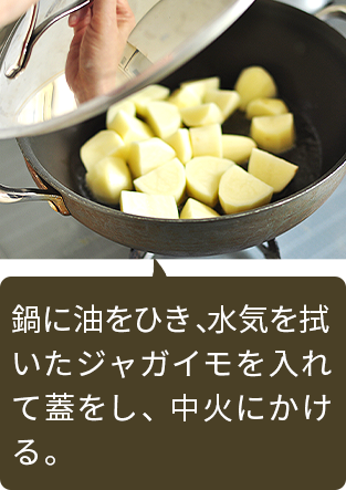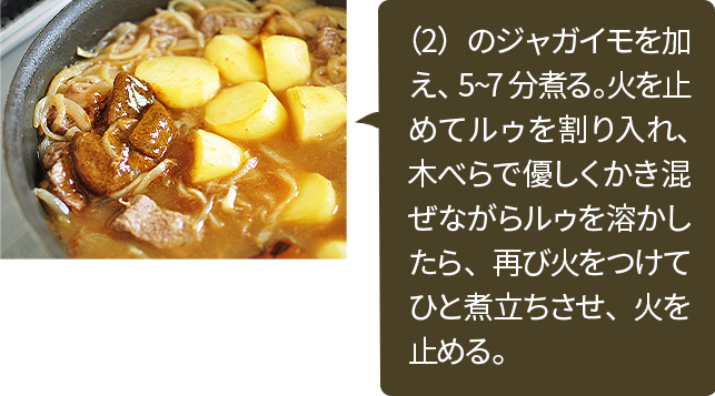 - カレールゥを入れる前に、あらかじめ材料にじっくり火を通しておけば、カレールゥを入れてからは長時間煮る必要はなく、ここからは冷ますことで中まで味をしみ込ませていきます。煮物は冷ますときに味が染み込んでいきます。食べるときにもう一度火にかけて温めなおしてください。