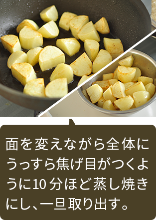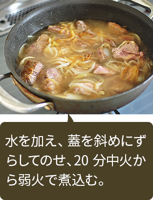 「じっくり炒める」「煮る」を両方叶えるために、フライパンのように焦げ付きにくい加工がされている鍋を用いて作りましたが、もしなければ、フライパンで炒める→鍋に移して煮込む、と調理器具を2つ使ってお料理していくとうまくいきます。じっくり炒めるのが苦手な種類の薄手のお鍋を使うと、焦げ付くばかりで旨味がちゃんと引き出されないので、その場合はフライパンでじっくり炒めてからお鍋に移して煮込んでいきましょう。