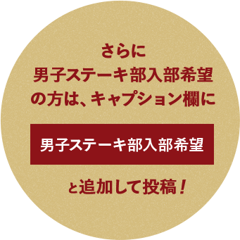 男子ステーキ部に入部希望の方(男性のみ)は、コメント欄に「男子ステーキ部入部希望」と記入ください。