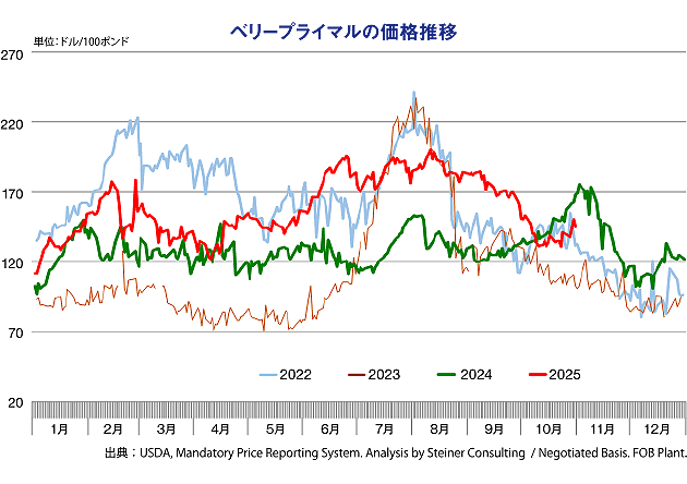 ウォール・ストリート・ジャーナル紙は、12日付の社説「Beef Is Now Political Red Meat」で、サーロイン価格が急騰した真の理由を知るべきだとし、干ばつと繁殖農家のコスト上昇によって、米国の牛群が縮小を続けていることに触れている。また、メキシコ産生体牛の輸入がNWSの発生によって停止されたことで、供給がさらに絞られ、生体牛価格は過去1年で24%急騰し、パッカーの利益率を圧迫していることについても解説している。