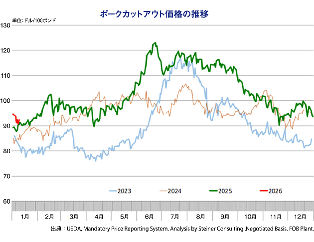 牛肉供給のひっ迫は2026年も続き、牛肉生産量は5%減と予測されている。過去最高値を更新している価格はさらに上昇する見込みだ。一方で、酪農業界での牛肉生産が増加している。高品質な牛肉生産に最適化された遺伝子を持つ酪農用子牛によって、高品質の牛肉を提供できるようになっている。